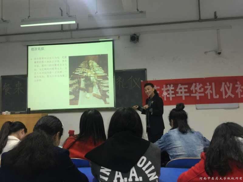 此次讲座是为响应学校文明委深化拓展文明执教、文明服务、文明上网、文明交通、文明旅游、文明餐桌等“六文明”活动举办的。张老师首先从要在最好的年龄对得起自己最美的青春谈起,告诫同学们要多读书、多思考,提醒同学们读过的书会在生命里留下独具魅力的气质。接着用几个就餐礼仪问题问答开始,迅速调动了同学们的听课情绪。讲座分为六个部分,依次是中餐礼仪、西餐礼仪、校园就餐礼仪、自助餐礼仪、饮酒礼仪和饮茶礼仪。整个讲座持续两个小时,讲座过程中同学们积极性颇高,参与互动、讨论与老师配合默契。