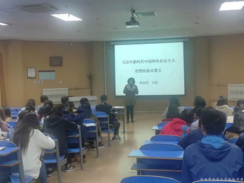 该院明确提出教师以教案为载体,将党的十九大精神与教学内容进行无缝对接,及时将党的最新理论成果和党的主张带进课堂。为确保党的十九大精神及时准确的传递给学生,该院以学科为单位,举办党的十九大精神“进教案”、“进课堂”、“进头脑”集体备课会,就思政理论课各门课程落实党的十九大精神的教学重点、热点和难点,党的十九大精神进高校思想政治理论课的有效途径和方法等进行研讨,大力督促课堂落实,确保党的党的十九大精神全面有机地融入思想政治理论课教学体系。