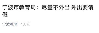 通知指出,近期,各地各校要严格控制教职工和学生外出,原则上所有教职工和学生不得离开宁波大市范围,确因工作需要外出的,一定要履行好请销假手续。