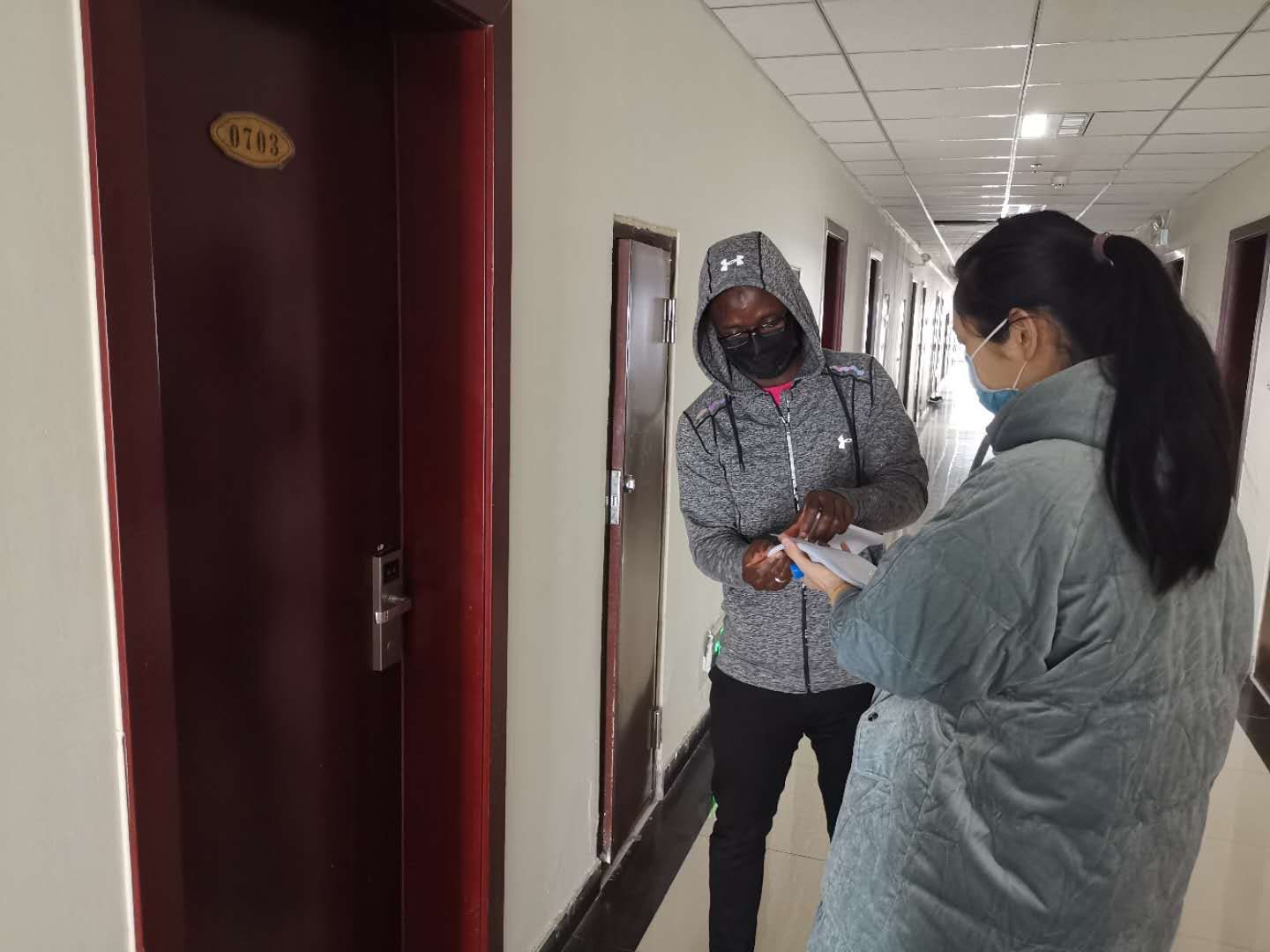 提到学校与国际教育学院对留学生的关心和照顾,另一位叫米福的留学生,也深有同感。“我前段时间生病了,了解到因为疫情看病困难,周友龙老师专门从家里来到我们留学生公寓帮我看病,看完病后,还专门把药从医院里取出来,免费送给我。”一提起这件事,米福到现在还充满着感激之情。“我的家人刚开始很担心我,但是听到我说学校采取的防控措施,以及经常给我们发蔬菜和水果等基本生活保障措施,他们就放心了,认为比回到我们自己国家还要安全。”