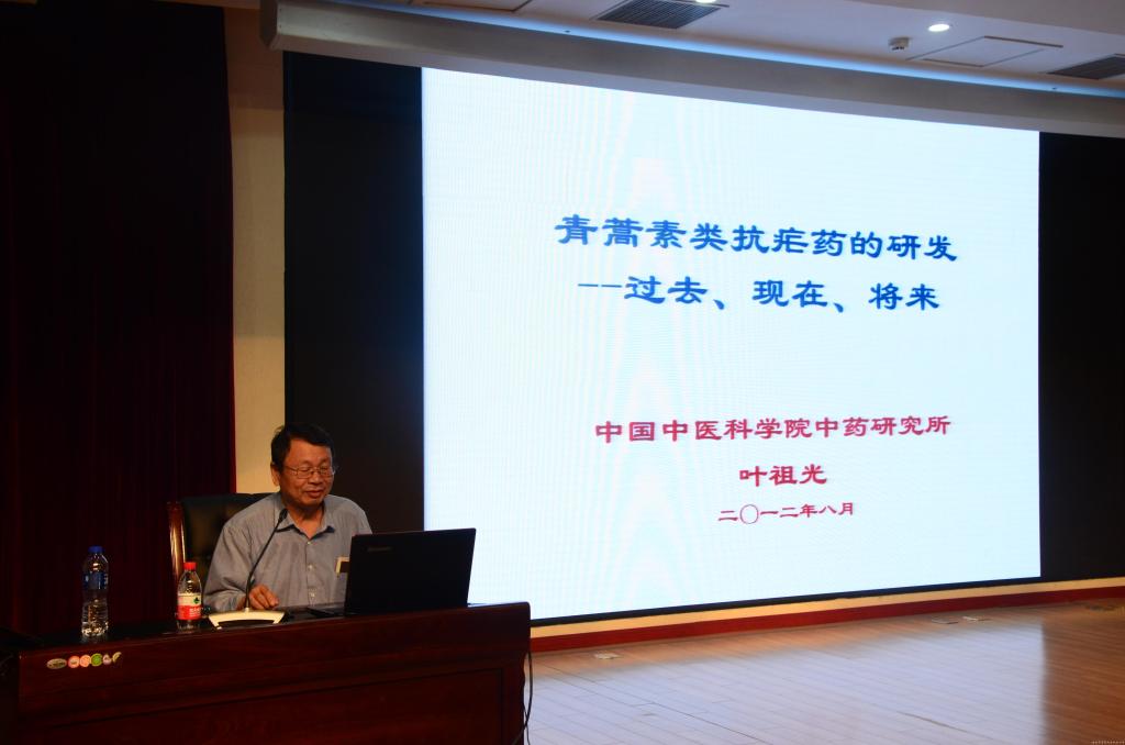 叶祖光教授以“青蒿素研发的过去、现在与将来”为题,从自身开展事青蒿素研究的经历谈起,高屋建瓴地阐述了世界疟疾的概况,治疗疟疾药物青蒿素的研发思路及作用机理,深入浅出地讲解了青蒿素的研发历程。让在座师生对获得诺贝尔奖的青蒿素研发思路和将来的发展应用有了更深层次的理解,对参会人员的科研思路有很好启迪作用。叶祖光教授的精彩学术讲座,赢得了听众的阵阵掌声。