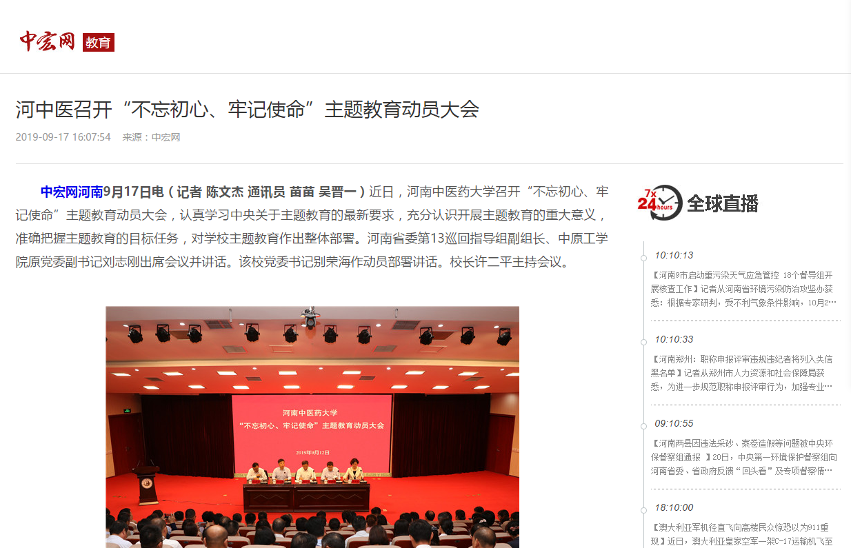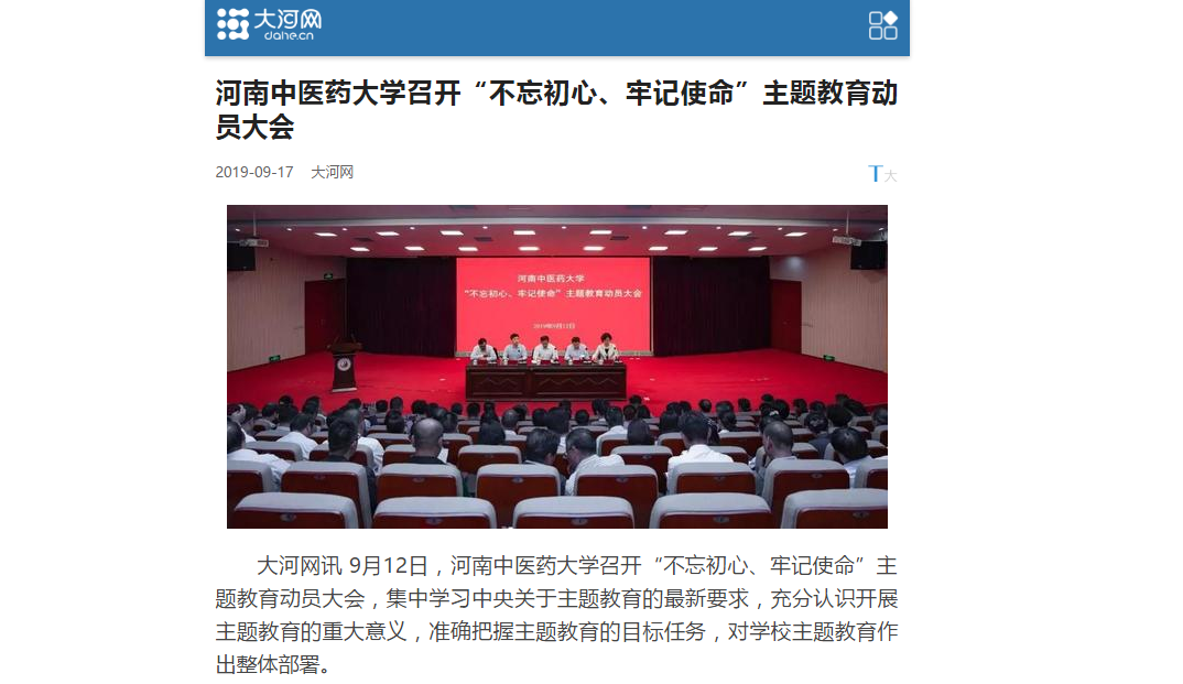 2019年9月15日-17日,光明网、中宏网、大河网、大河号对leyu·乐鱼(中国)体育官方网站“不忘初心、牢记使命”主题教育动员大会进行报道。