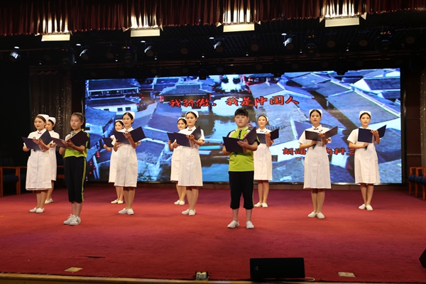 朗诵会上,《情涌中华》《祖国万岁》《我骄傲我是中国人》《沁园春·雪》赞美了祖国的大好河山,颂出了中华儿女的自信豪迈;《民族的丰碑》《满江红·怒发冲冠》将大家带到了抵御外敌入侵的场景中,提醒大家牢记历史、珍爱和平;《启航》《回归》展现了改革开放、“一国两制”的伟大创举,激起了大家同心共筑中国梦、实现中华民族伟大复兴的豪情;《党的赞歌》让大家深切体会到了没有共产党就没有新中国。