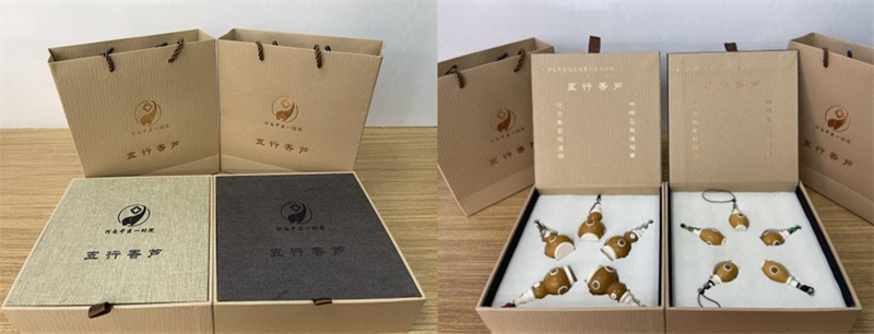 最终在一附院王新志教授等数名中医药专家指导下,一附院选定“防疫防瘟、驱蚊虫、改善睡眠、增强免疫、预防感冒”五种功效,根据中医理论组方,选取道地药材并结合传统炮制技术配料,融合葫芦烙画非遗传承工艺,匠心打造出“五行香芦”。作品一经推出,便受到了广泛欢迎,在第一阶段评选中,从千余件作品中顺利入围网络评选,在网络投票环节中,从113件(套)作品中脱颖而出,获得人气总排名第13的好成绩,并在终评环节,以排名第6的成绩获得最佳设计奖(实物类)。