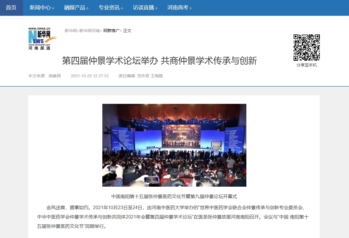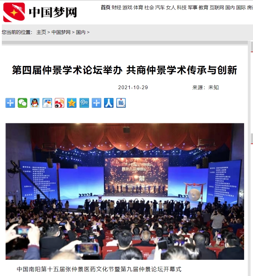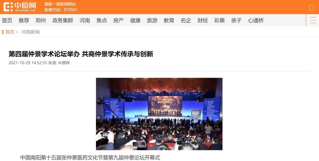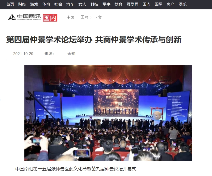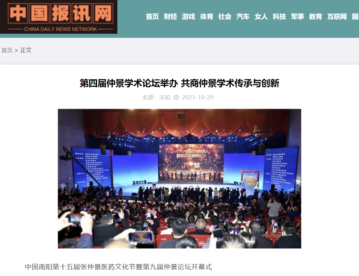 编者按:2021年10月29日,新华网、中国产业新闻、中国财经要闻、中国资讯网、中国消费网、中国信息网、中国报讯网、中国梦网、美丽中国报、科技中国、国创业在线、缤纷中国、财经中国、百姓中国网、中国大观网、创业中国、经典中国、中国侨报网、中国前沿观察网、中国网讯、中原网等多家媒体对leyu·乐鱼(中国)体育官方网站举办的“世界中医药学会联合会仲景传承与创新专业委员会、中华中医药学会仲景学术传承与创新共同体2021年会暨第四届仲景学术论坛”进行报道。