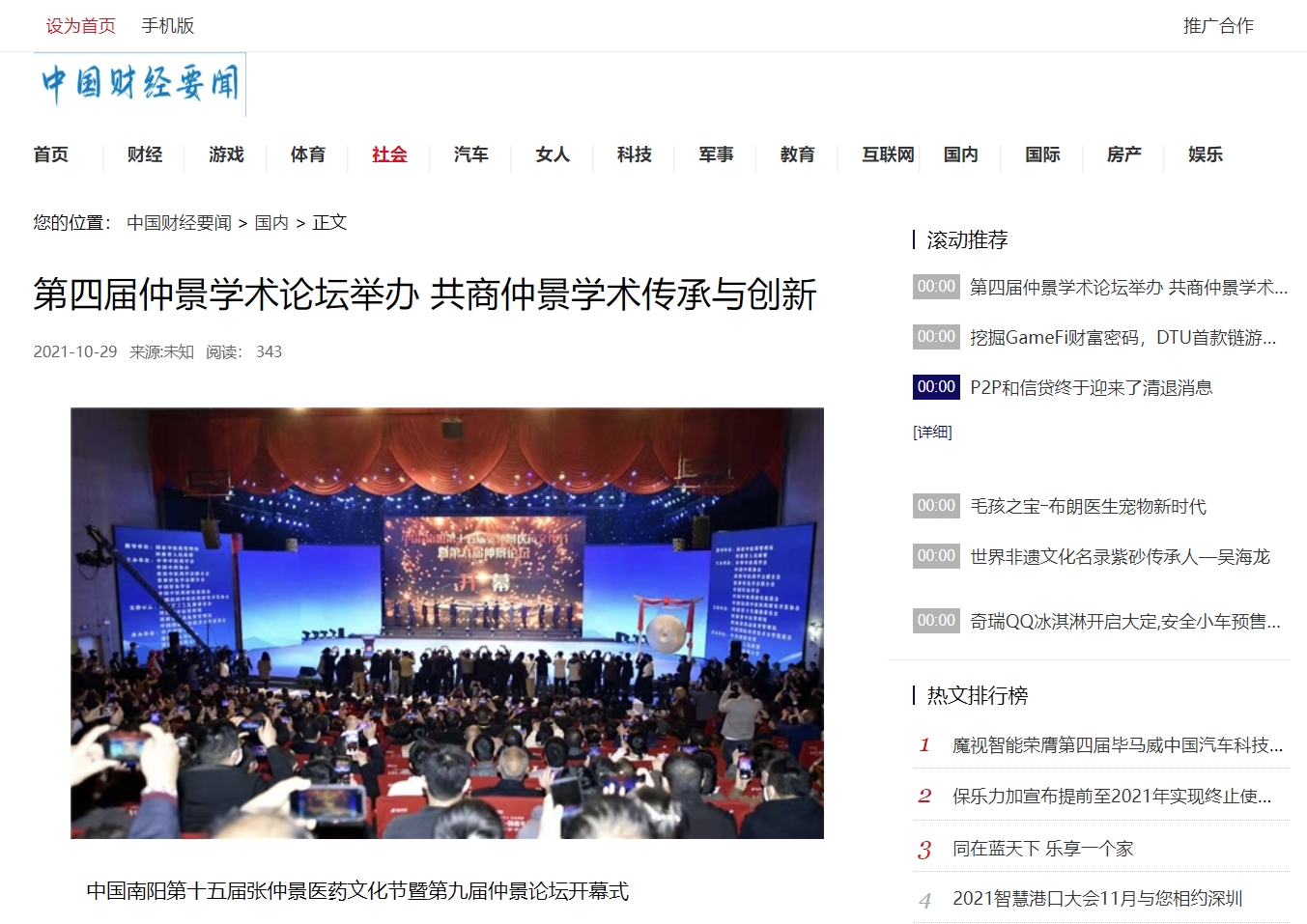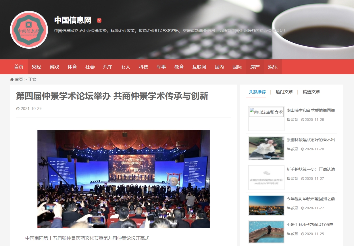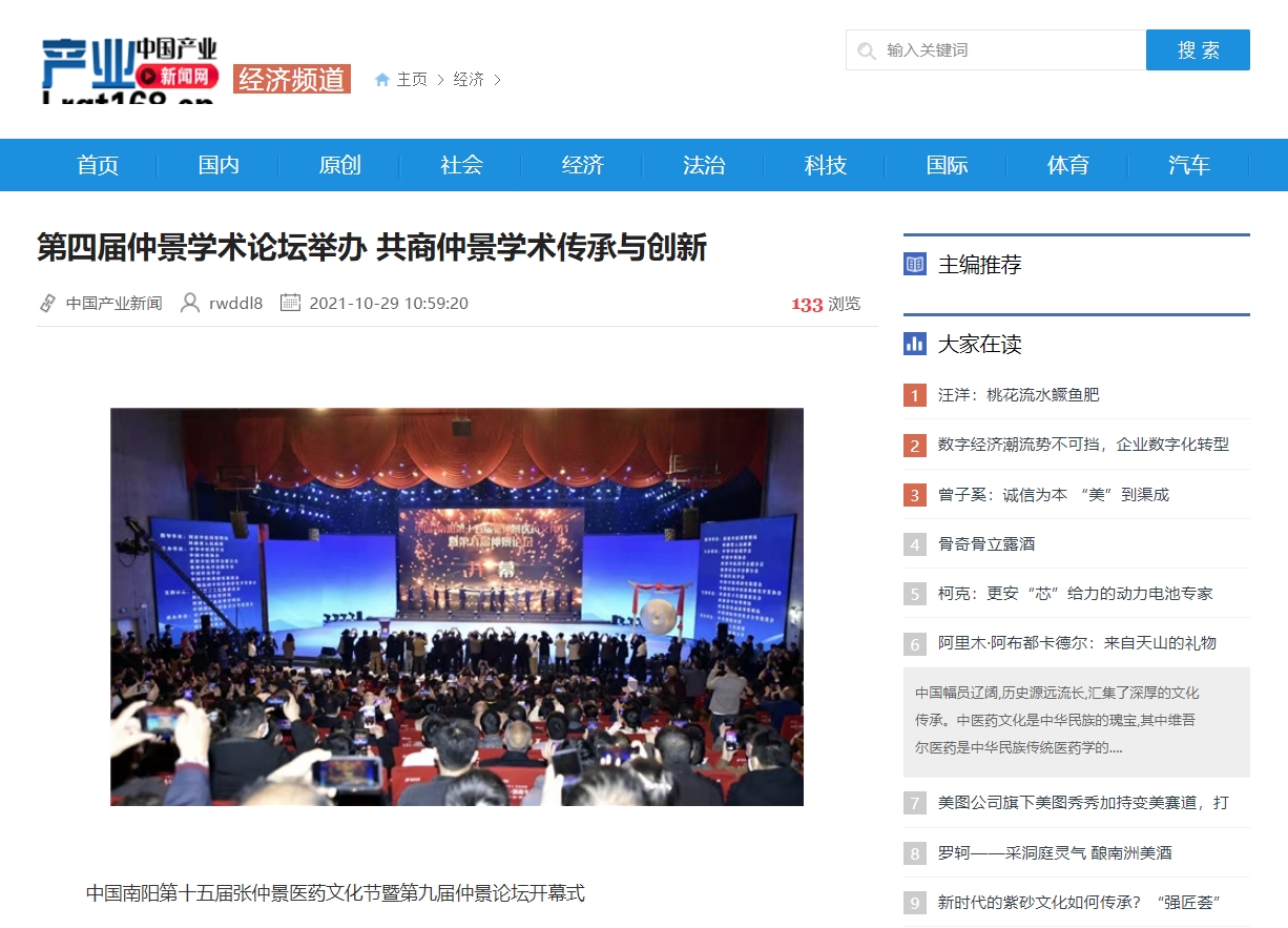 编者按:2021年10月29日,新华网、中国产业新闻、中国财经要闻、中国资讯网、中国消费网、中国信息网、中国报讯网、中国梦网、美丽中国报、科技中国、国创业在线、缤纷中国、财经中国、百姓中国网、中国大观网、创业中国、经典中国、中国侨报网、中国前沿观察网、中国网讯、中原网等多家媒体对leyu·乐鱼(中国)体育官方网站举办的“世界中医药学会联合会仲景传承与创新专业委员会、中华中医药学会仲景学术传承与创新共同体2021年会暨第四届仲景学术论坛”进行报道。