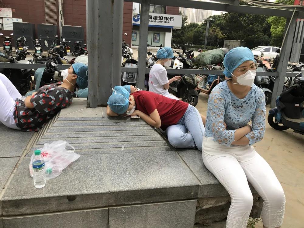 从晚八点钟一直持续到次日十一点钟,整整12个钟头,她们终于圆满完成了此次采样任务,此刻杜俊鸽才发现自己四肢早已麻木,体力不支、差点晕倒,但心里却又特别骄傲、自豪。在等待医院大巴车来接的时候,杜俊鸽和她的小伙伴都已经累得在大街上的椅子上坐着睡着了。