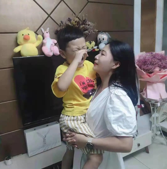 杜俊鸽和哭闹不止的儿子