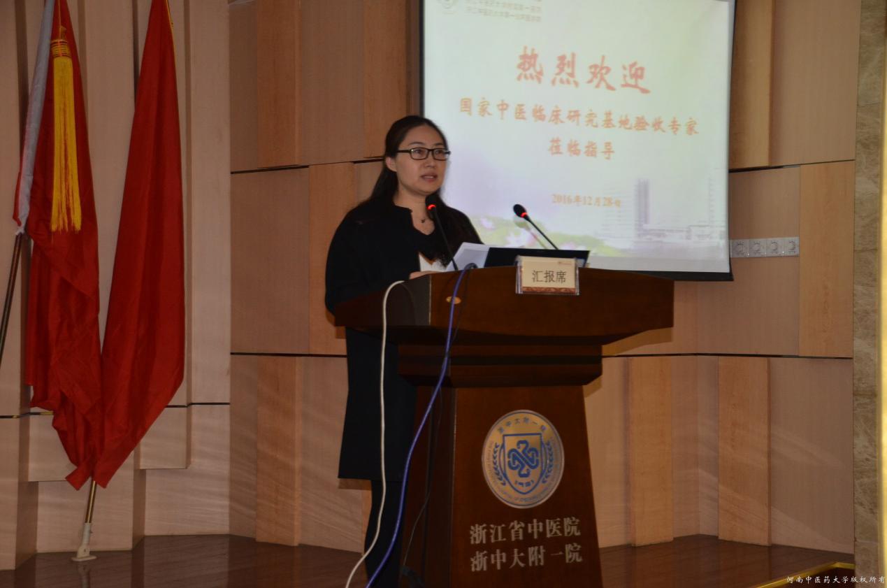 省中管局科教处副处长张莉代表河南省中医局汇报河南基地建设情况
