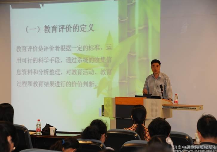 2014年9月25日下午,河南教育学院教育系副主任、全国模范教师、河南省心理学会常务理事吕纪增教授做客leyu·乐鱼(中国)体育官方网站百家论坛,为leyu·乐鱼(中国)体育官方网站师生作了题为“发展性教育评价的概念及实施方法”的专题讲座。各二级院部学科负责人教师代表和教务处、教育研究与教学评价中心等职能部门的教学管理人员聆听了讲座。讲座由教务处副处长卢旻主持。