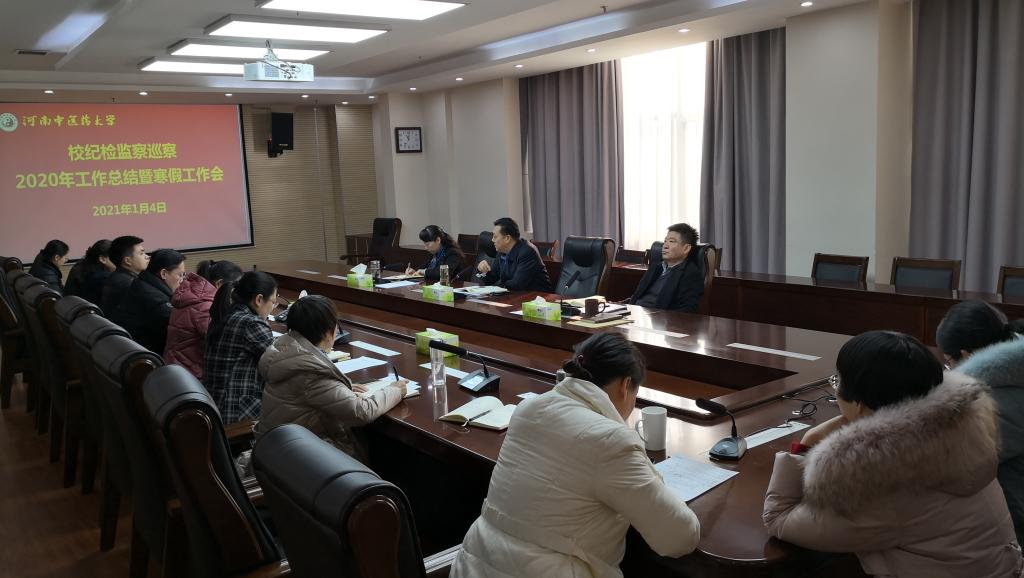 本网讯(文/苗苗 图/徐强)2021年1月4日,leyu·乐鱼(中国)体育官方网站召开会议总结2020年度纪检监察巡察工作,并对寒假期间工作进行安排部署。校纪委书记、监察专员王少玉主持会议并讲话,校纪委监察专员办公室和党委巡察办全体同志参加会议。