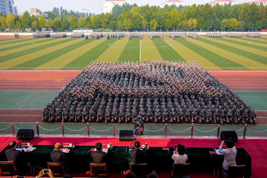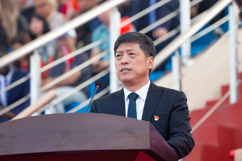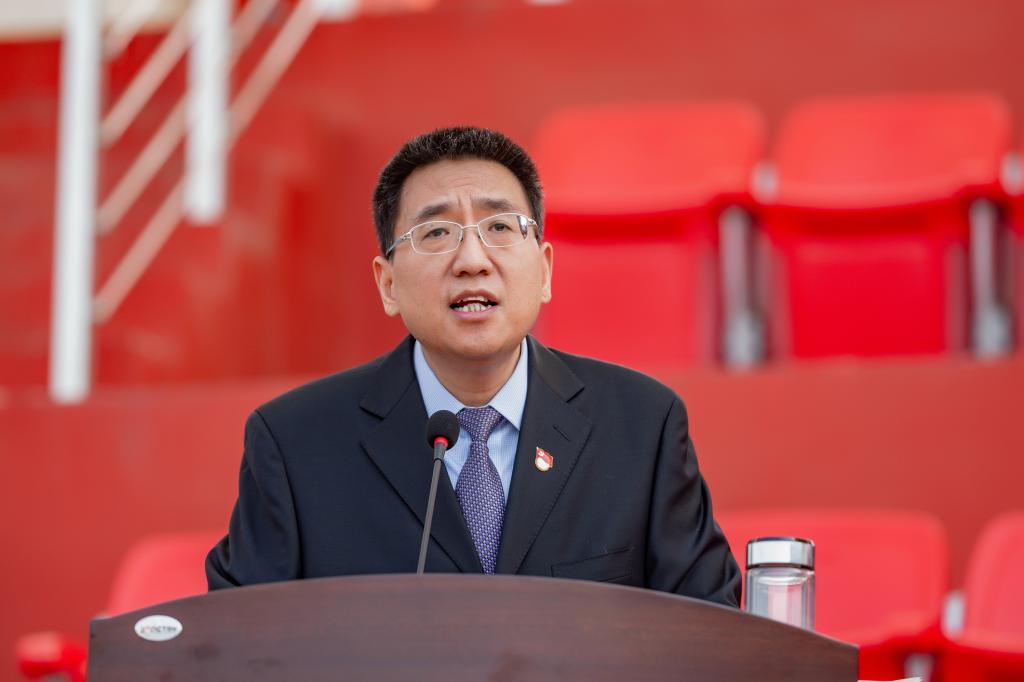 校党委书记别荣海发布军训汇报表演指令并为新生上开学第一课