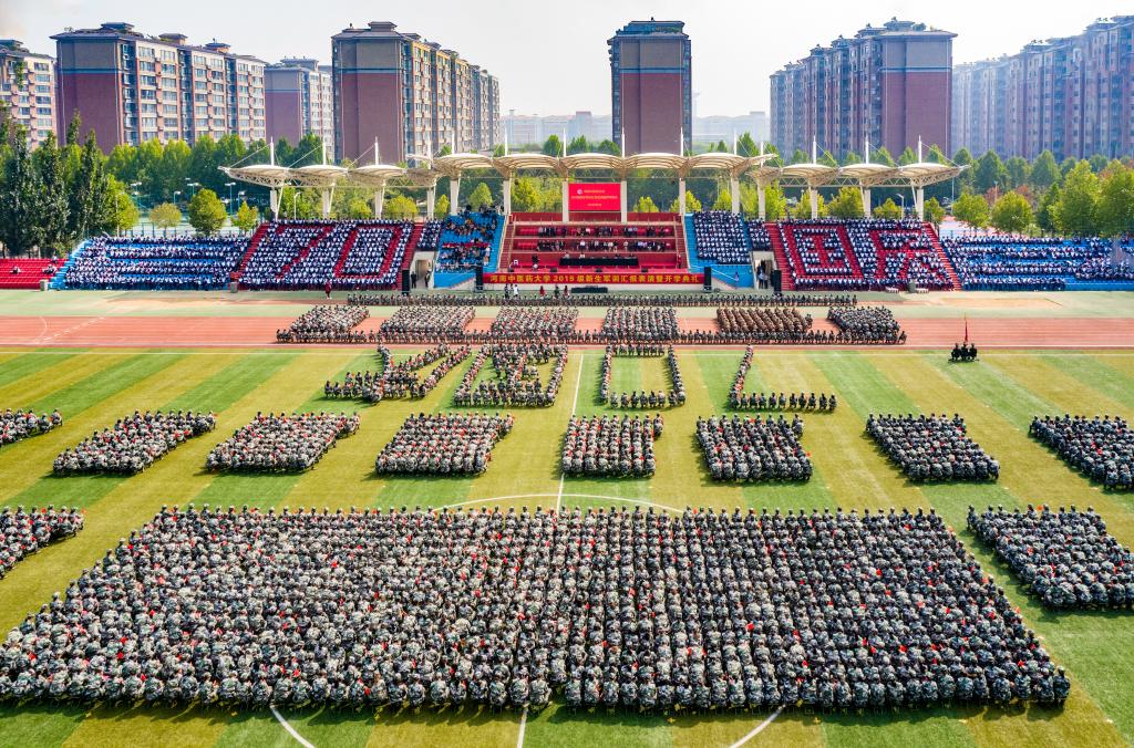 本网讯(文/吴晋一 马志超 许露雅 王帅锋 图/秦东仁 刘洪锋 郭浩 郭寅虎)2019年9月21日上午,leyu·乐鱼(中国)体育官方网站2019级新生军训汇报表演暨开学典礼在东体育场举行。在郑校领导、各部门各单位负责人、教师代表、2019级本专科学生、研究生、留学生、新闻媒体记者等参加活动。活动由校党委委员、工会主席张加民主持。
