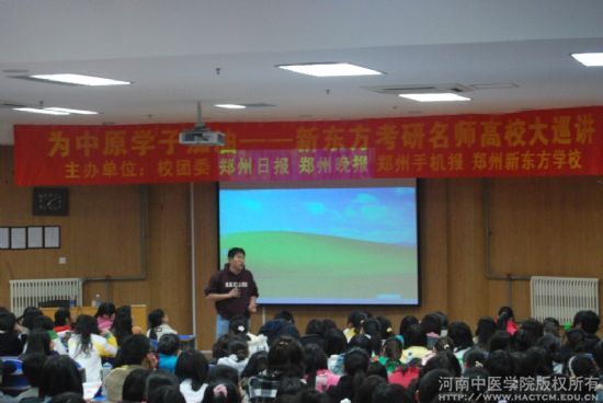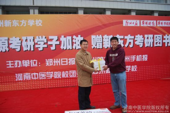 4月11日下午,由郑州日报、郑州晚报、郑州手机报、郑州新东方学校与leyu·乐鱼(中国)体育官方网站团委联合举办的大型赠书与考研辅导活动在leyu·乐鱼(中国)体育官方网站龙子湖校区隆重举行。郑州新东方学校为leyu·乐鱼(中国)体育官方网站广大考研学生免费赠送考研图书2000册,郑州新东方学校校长印建坤先生还为同学们做考研辅导讲座。