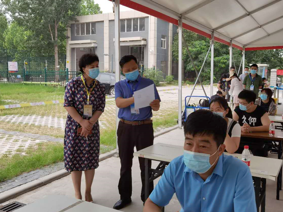校党委副书记、工会主席张小平,校纪委书记、监察专员王少玉,副校长冯卫生,校党委委员、副校长田力等先后到场,对考务工作进行视察指导。校领导对本次线下考试工作的现场组织和防控措施给予肯定,并要求工作人员严格执行各项政策法规,严格落实疫情防控措施,将疫情防控贯穿考试始终,以高度的政治责任感做好此次考试组织工作。