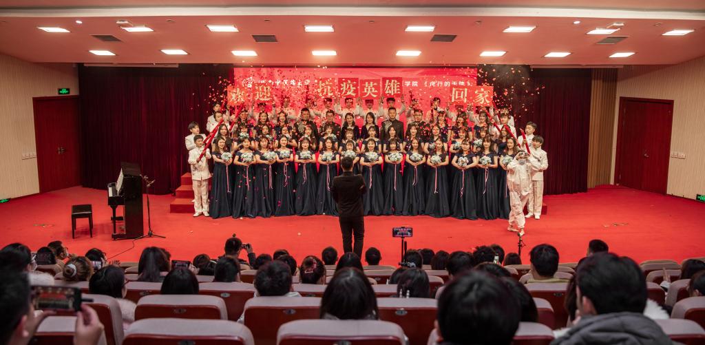 除比赛外,各学院精心准备了朗诵、舞蹈、灯光秀等节目,现场精彩纷呈、高潮迭起。脍炙人口的歌曲,唱出了新时代青年自强不息、朝气蓬勃的精神面貌,表达了对抗疫英雄的崇高敬意和对祖国的浓厚深情。