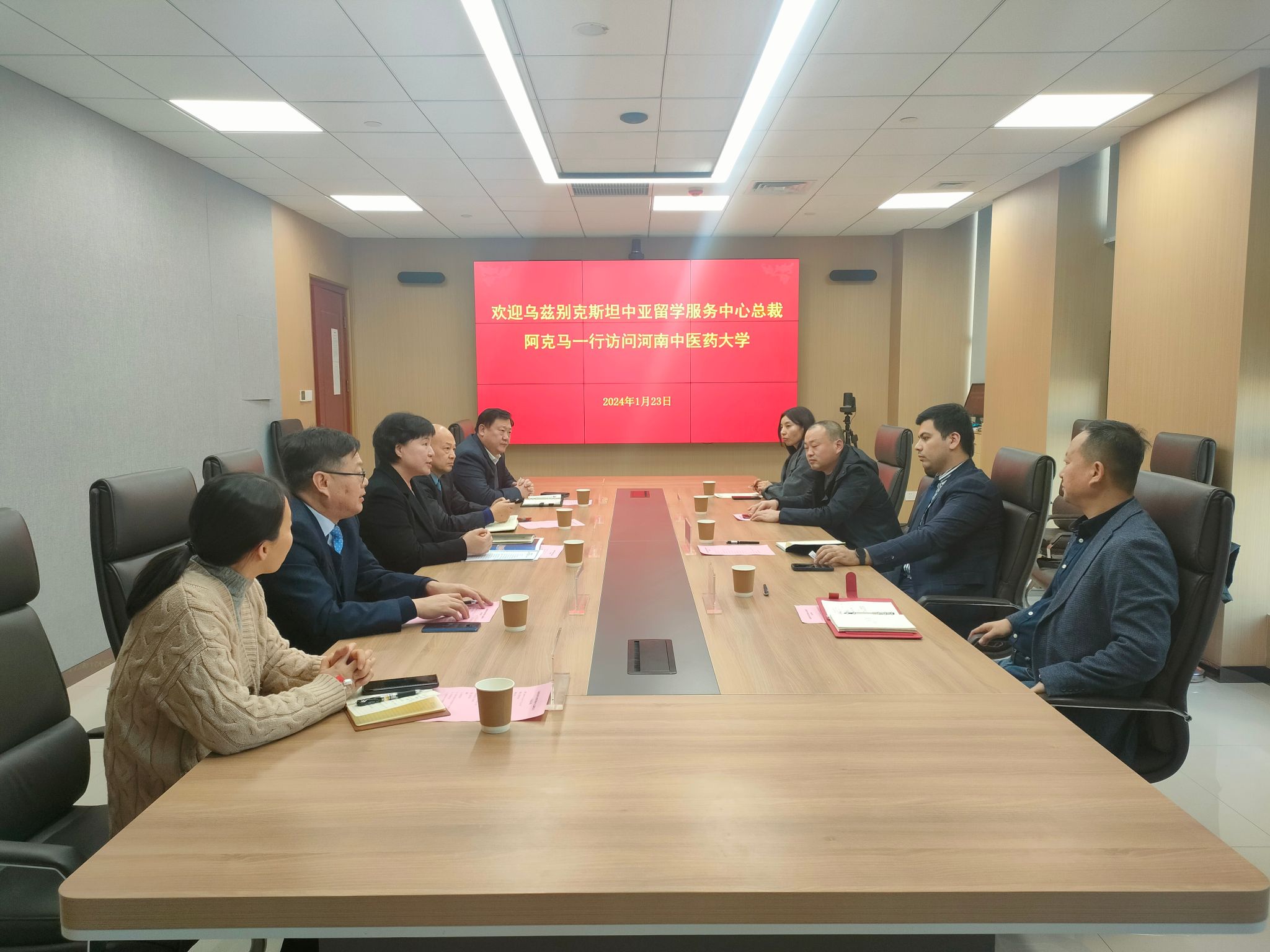 本网讯(文/图 李敬平)2024年1月23日,乌兹别克斯坦中亚留学服务中心总裁阿克马一行访问leyu·乐鱼(中国)体育官方网站。校党委委员、副校长田力会见来宾,国际合作处和国际教育学院负责同志参加了座谈。