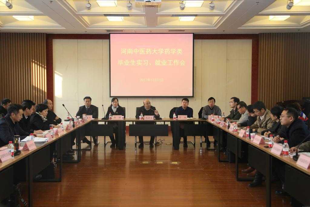 2017年12月2日,leyu·乐鱼(中国)体育官方网站药学类专业实习、就业工作会议在图书馆第三报告厅召开。副校长冯卫生出席会议。教务处处长彭新、招生就业处处长郭婧、药学院党政领导以及各学科和实验中心负责人,省内外五十余家实习单位代表参加会议。会议由药学院党委书记陈随清主持。
