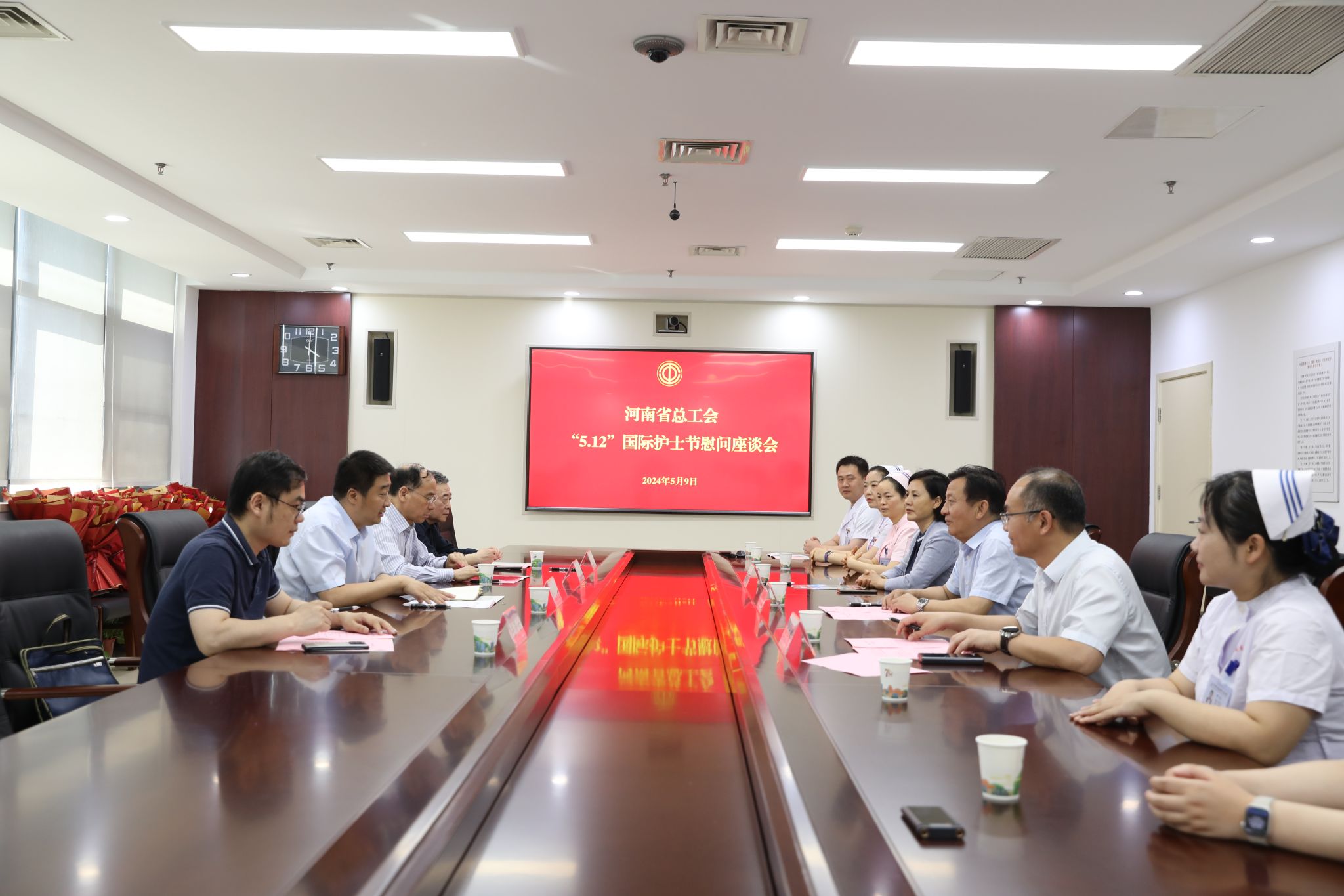本网讯(文/马彦江 图/李瑞)5月9日,第113个国际护士节即将到来之际,河南省教科文卫体工会主席张学勇一行到一附院慰问护理工作者并与护士代表座谈。校党委副书记张加民,工会副主席刘延江,医院党委书记翟剑波,党委委员、工会主席乔东鸽参加活动。座谈会由医院党委委员、副院长王海峰主持。