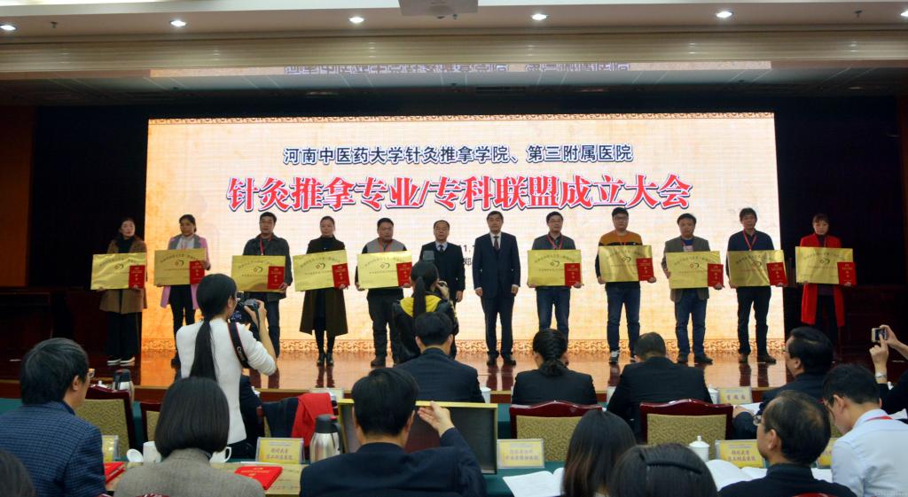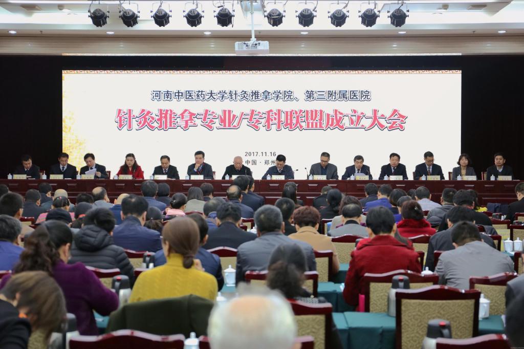 为落实国家卫生计生委《关于开展医疗联合体试点工作的指导意见》及《中医药法》的精神,适应分级诊疗及新的医改政策,进一步提升我省针灸推拿专业/ 专科服务能力,针灸推拿专业/ 专科联盟在三附院成立。2017年11月16日,成立大会在郑州市紫荆山宾馆举行。来自省内外的181家二级以上医院及开设针灸推拿专科的基层乡镇卫生院的医院领导、负责人200余人参加会议。国医大师张磊、省中医管理局医政处处长姬淅伟、中国针灸学会副会长刘智斌、leyu·乐鱼(中国)体育官方网站副校长李建生及三附院党政班子、针灸推拿专业/ 专科联盟主委、常委共同出席大会。大会由三附院党委副书记郭书敏主持。