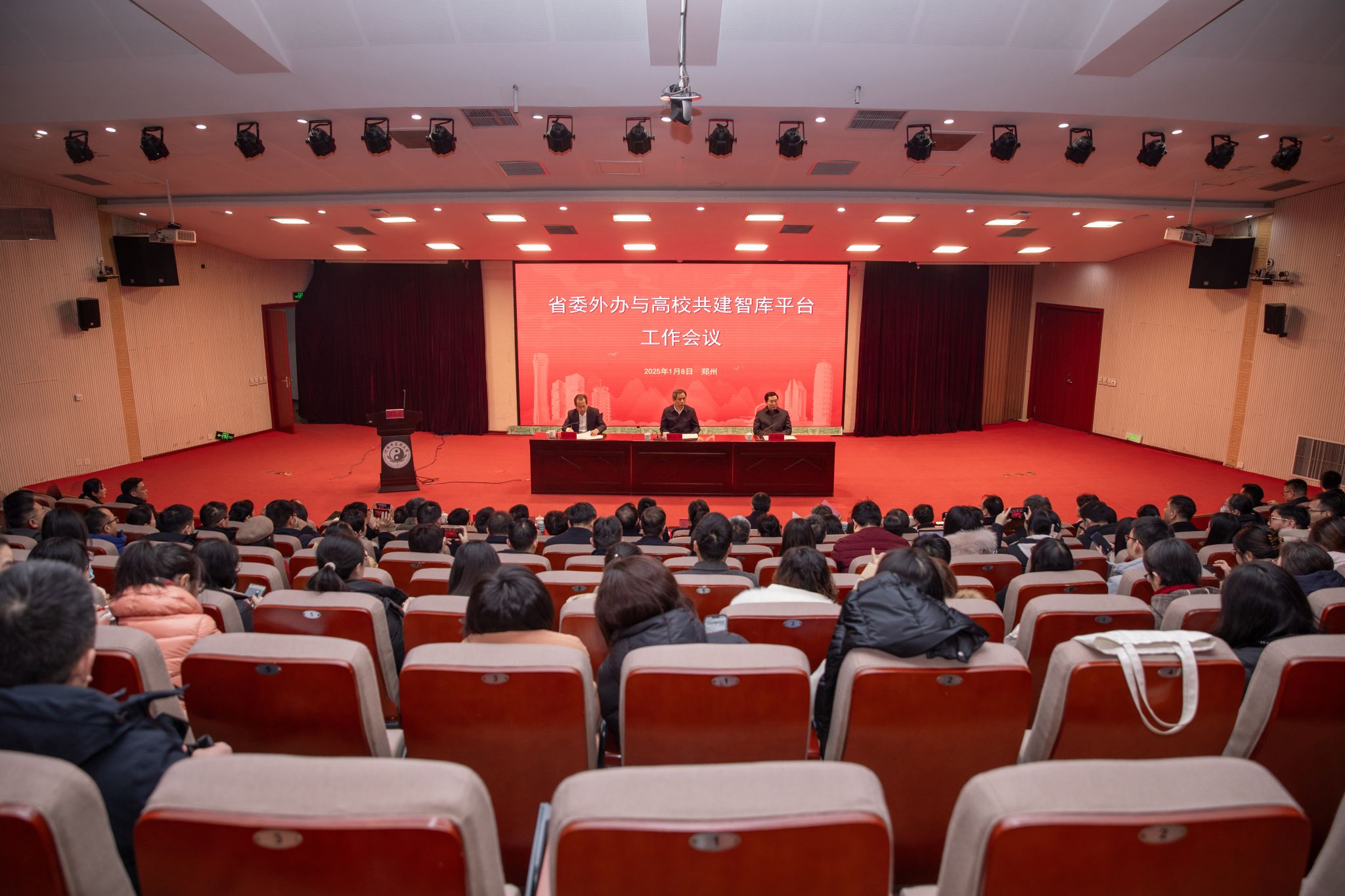 本网讯(文/马笑峰 图/郭寅虎)为加强高校共建智库平台建设和管理,充分发挥智库平台在做好“两个服务”和区域经济文化发展方面的作用,2025年1月8日,省委外办与高校共建智库平台工作会议在leyu·乐鱼(中国)体育官方网站隆重举行。省委外办主任梁杰一、副主任李冰冰,leyu·乐鱼(中国)体育官方网站校长王耀献,党委副书记、工会主席张加民,副校长田力和各智库平台高校主管校领导、负责人参加会议。会议由李冰冰主持。