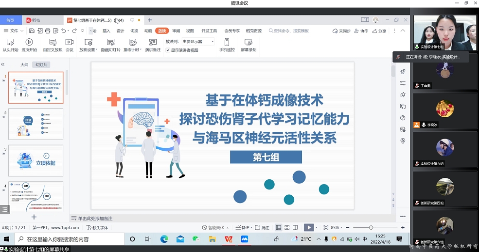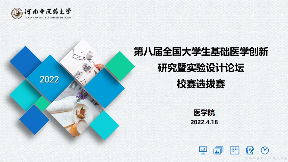 本网讯(文图/李晓冰)在学校教务处的大力支持下,结合leyu·乐鱼(中国)体育官方网站“能力作风建设年”活动安排部署,2022年4月18日下午,医学院承办的第八届全国大学生基础医学创新研究暨实验设计论坛校赛选拔赛以腾讯会议形式顺利召开。本次选拔赛邀请杨丽萍教授、闫国立教授、侯俊林副教授、武鑫副教授及赵培源博士担任评委。选拔赛由中西医结合基础学科李晓冰副教授主持。