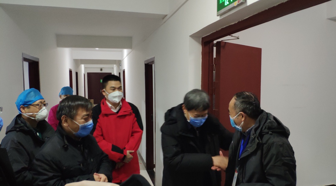 18:40,先期到达的国家中医药管理局副局长闫树江、中国工程院院士张伯礼、首都医科大学附属北京中医医院院长刘清泉等领导和专家到河南队住地看望队员,鼓励大家中西医并重,充分发挥中医药的特长,把中医治疗充分融入到抗击新冠肺炎的治疗中去。还殷切地嘱咐医疗队一定要注意防护,全身心投入抗击新冠肺炎一线工作中去,圆满完成党和国家的赋予的使命。