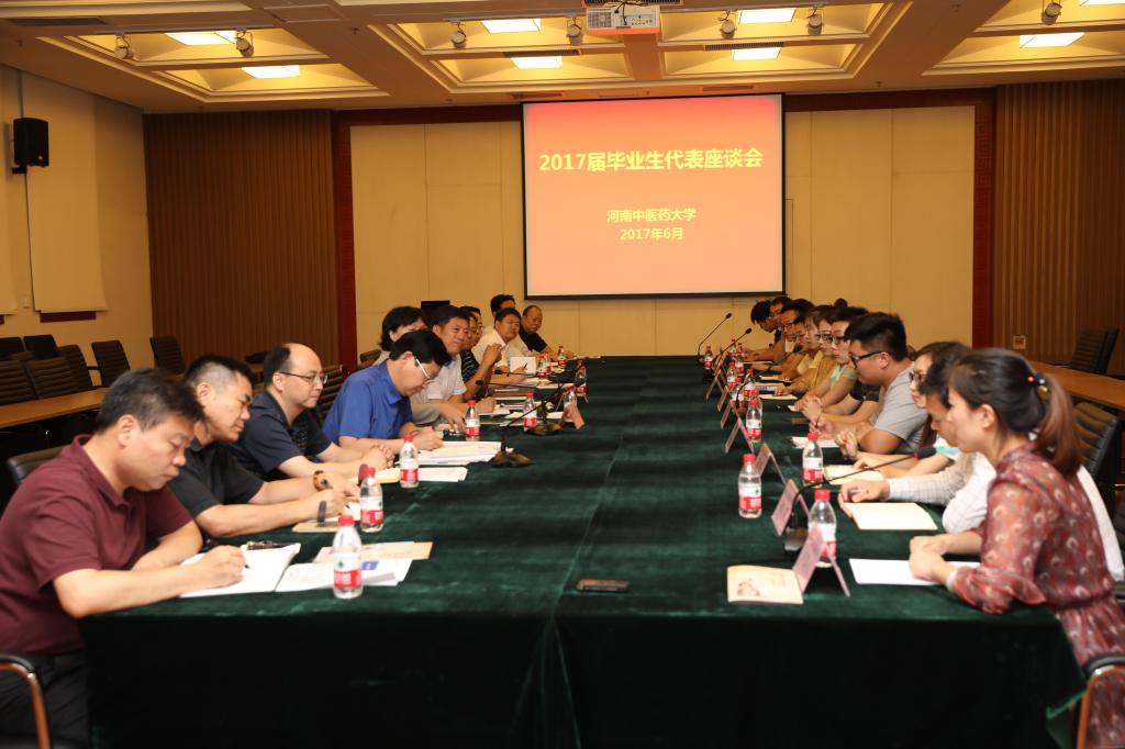 座谈会前,参会人员共同观看了由学工部制作的《那年我们一起——leyu·乐鱼(中国)体育官方网站2017届毕业生纪念》视频。接着,来自十个二级学院的本科生代表和两个研究生代表介绍了自己的大学生活及毕业去向,并围绕专业结构优化与课程设置、中医经典课程开设、实习实训实践能力提升、学生科研创新能力培养、图书结构优化、老校区后勤服务等有关学校在内涵建设、教育教学、管理服务等方面的工作积极发言,提出了中肯的意见和建议。会上,教务处、招生就业处、后勤集团、图书馆、保卫处、研工部等部门负责同志针对同学们提出的建议和意见分别进行了具体的解释或答复。