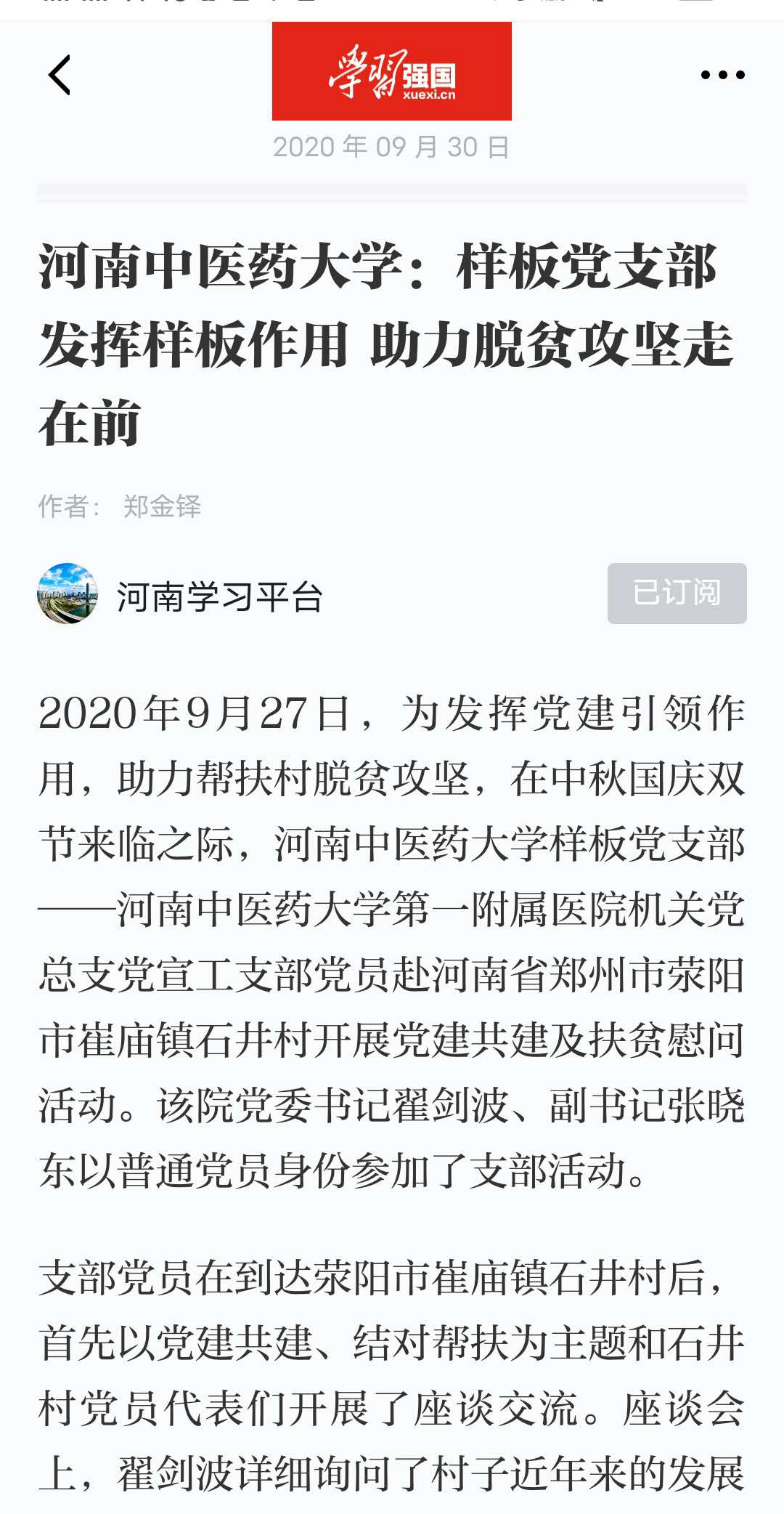 编者按:2020年9月30日,“学习强国”学习平台以《leyu·乐鱼(中国)体育官方网站:样板党支部发挥样板作用 助力脱贫攻坚走在前》为题,对leyu·乐鱼(中国)体育官方网站样板党支部——一附院机关党总支党宣工支部进行报道。现发布如下: