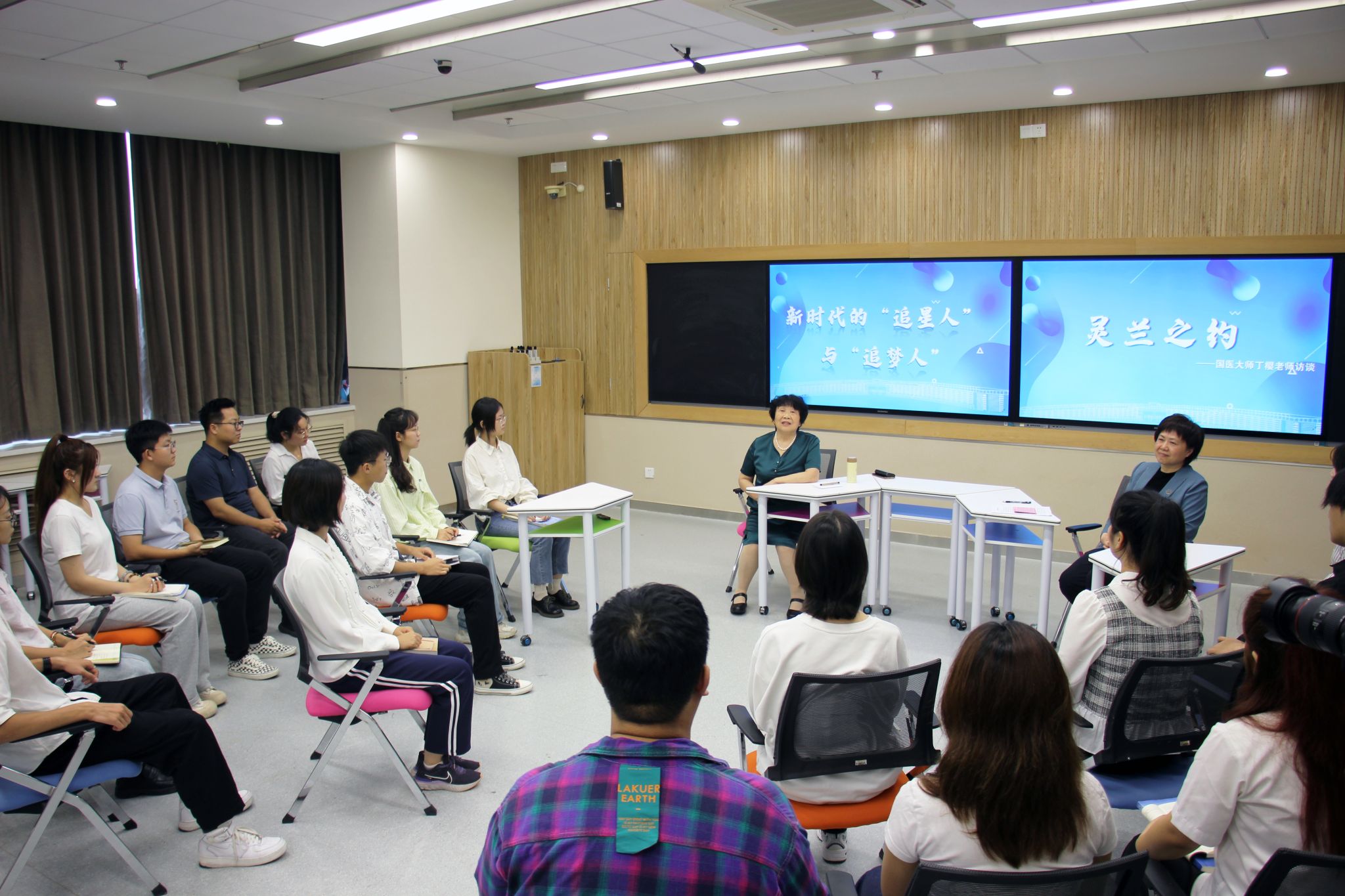 本网讯(文/苗苗 图/张金宵 段怀良)围绕全方位推进立德树人工作,体系化、生动化、品牌化挖掘运用好学校育人资源,学校党委推出“灵兰之约”系列活动,由党委书记邀请育人工作各领域代表与青年学生、青年教师面对面对话交流。旨在通过更加贴近时代、贴近青年、贴近基层的形式,拓宽空间渠道,创新实践做法,进一步提升立德树人的针对性、实效性、感染力。经过精心筹备、充分调研,9月12日下午,党委书记李小芳邀请“国医大师”丁樱教授来到中医学院,与仲景学术传承班、中医学、中医儿科学的同学们围绕“新时代的“‘追星人’与‘追梦人’”这一主题深入交流,成功举办第一期“灵兰之约”活动。