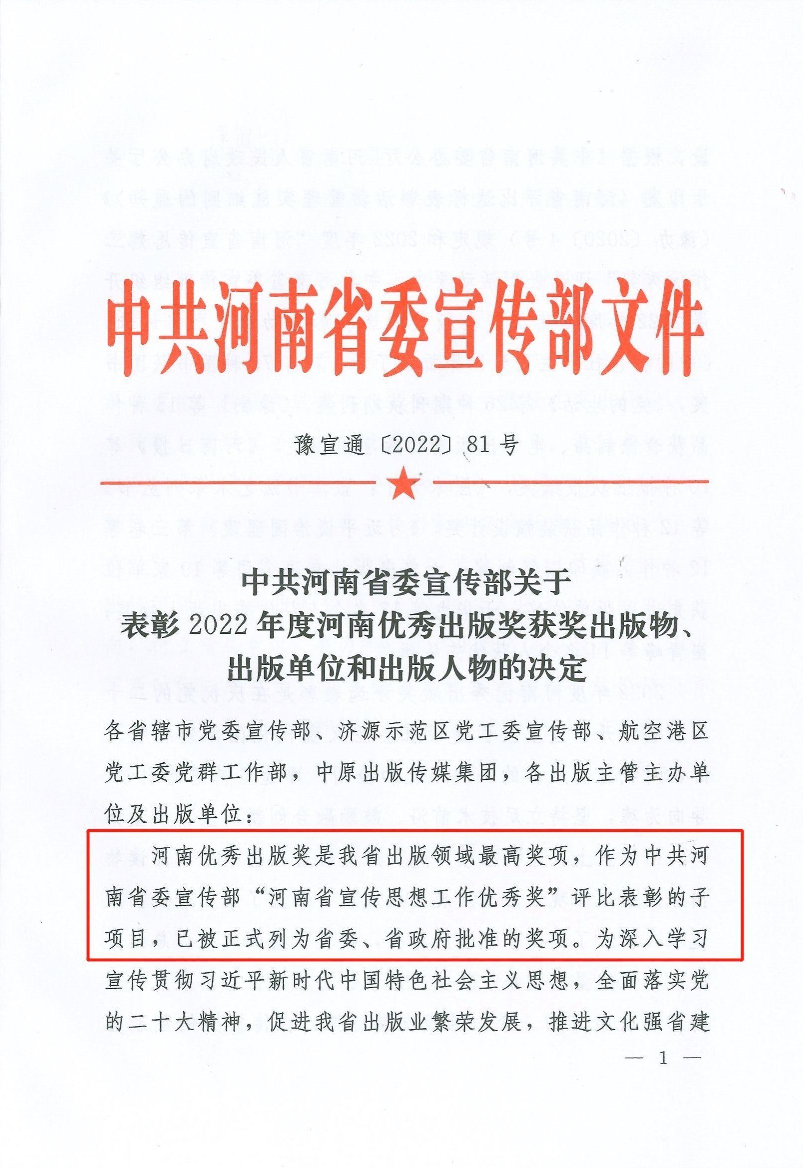 本网讯(文图/任平)日前,作为中共河南省委宣传部“河南省宣传思想工作优秀奖”评比表彰的子项目,已被正式列为省委、省政府批准的河南省出版领域最高奖河南优秀出版奖,在2023年全省出版(版权)工作会议上颁奖。leyu·乐鱼(中国)体育官方网站期刊社荣获2022年度河南优秀出版奖先进出版单位奖,河南省高校只有3家获此殊荣,另外两家分别是河南大学出版社有限责任公司、郑州大学学报编辑部。