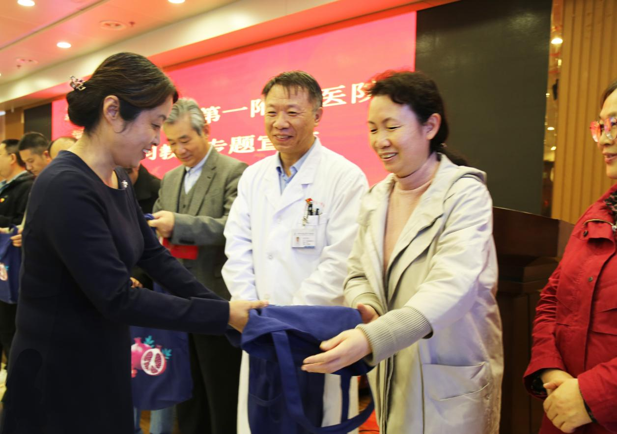 宣讲培训结束后,仲利娟为医院各党总支发放了《中国共产党统一战线工作条例》等学习书籍。