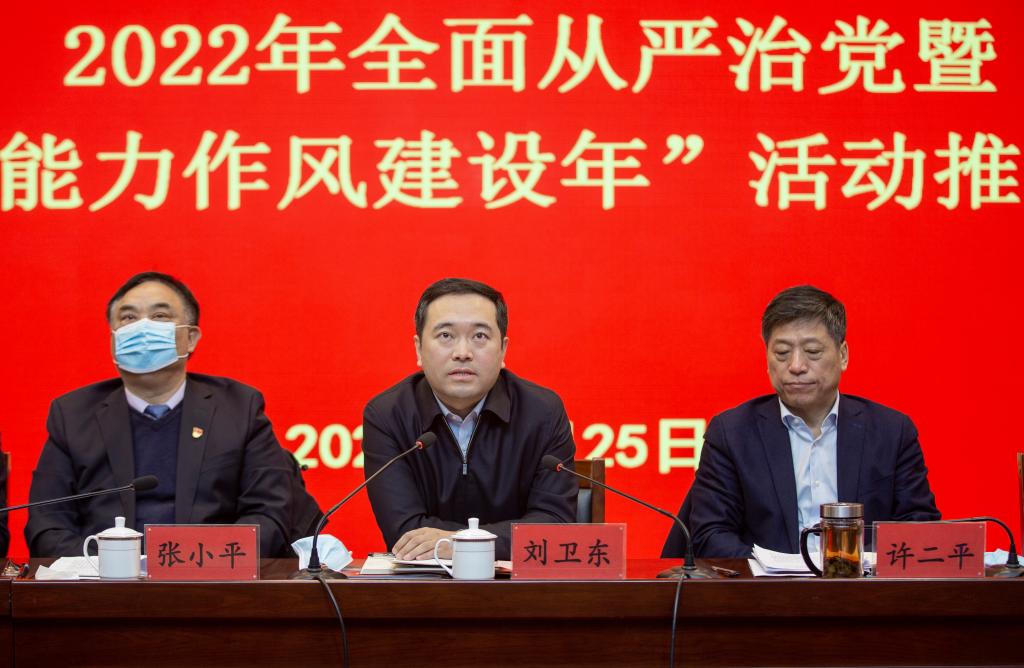 本网讯(文/校纪委监察专员办公室 党委巡察办 党委办公室 图/秦东仁)2022年2月25日上午,leyu·乐鱼(中国)体育官方网站召开2022年全面从严治党暨“能力作风建设年”活动推进会。省纪委监委第七监督检查室主任刘卫东同志受邀出席会议。校党委副书记、工会主席张小平主持会议。