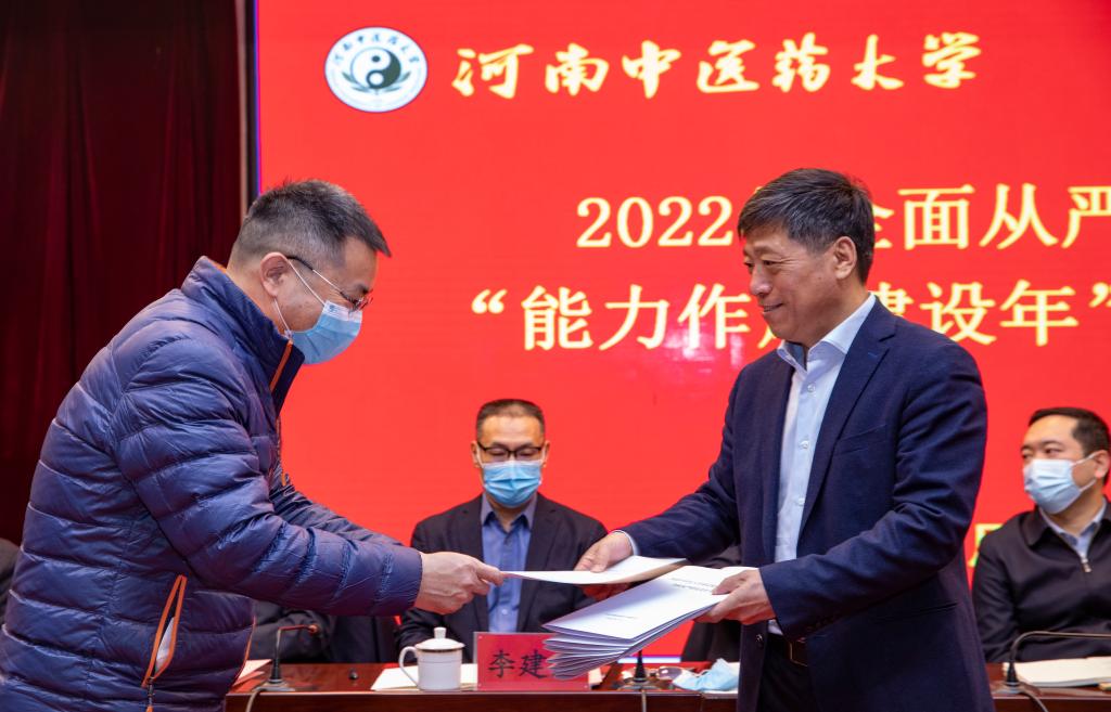 会上,校党委对2021年度全面从严治党先进集体进行表彰。校领导班子成员、基层党组织主要负责人向校党委递交了全面从严治党责任书。学工部、外语学院、三附院负责同志就党风廉政建设及能力作风推进工作进行了典型发言。