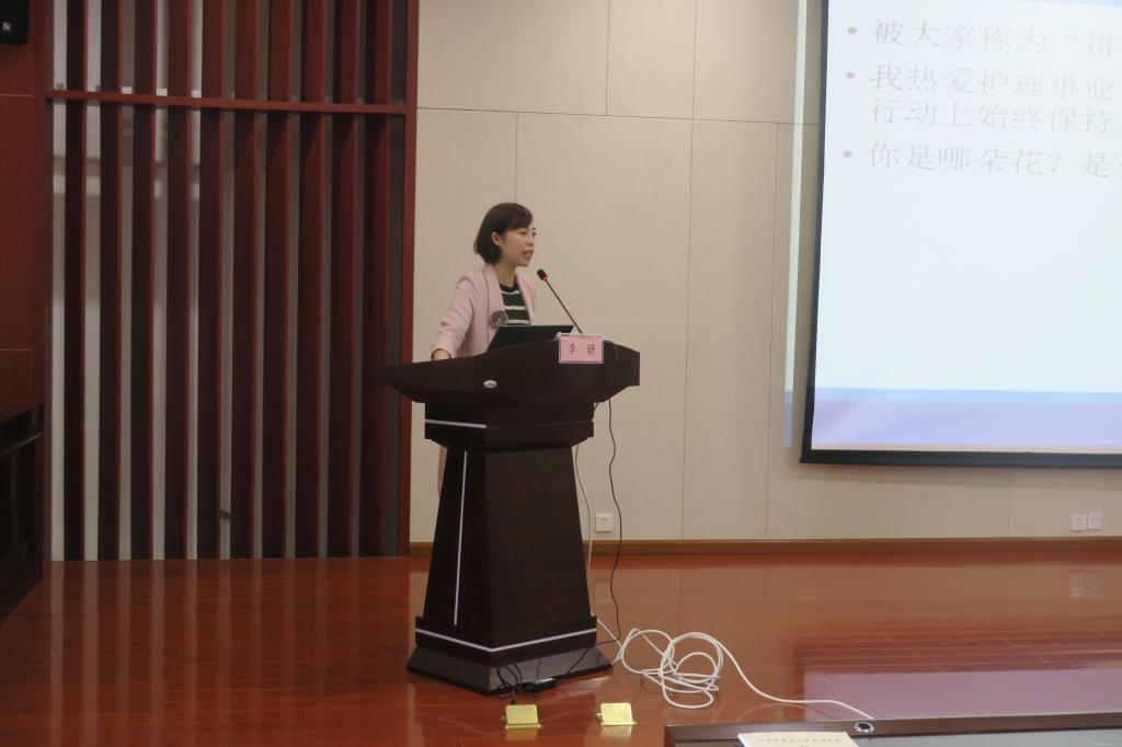 李妍从事护理工作11年,长期工作在医院脑病科、重症监护室、手术室业务繁重的临床一线科室,多次在院级、市级、省级各类比赛中获优异成绩。2014年被郑州市工会评为“最美护士”,2017年被评为“河南最美护士”。李妍老师在讲座中用一个个鲜活的案例分享了她在工作、生活中的点点滴滴:在工作中她是人们眼中的“拼命三郎”,不顾身体疾患,住院期间仍一直坚守在工作岗位;手术室内,做患者和家属眼中的“贴心的护士”,不求回报,只求一份理解、一份信任;无影灯下,做与医生并肩作战的“绿衣战士”,为4000余名患者送去了希望和健康;作为一名共产党员,是工作中的“领头羊”,钻研技术,连年被评为“优秀带教老师”“优秀共产党员”;作为一名医护人员,义无反顾的为患者救死扶伤,下班途中跪地救人;她热爱护理事业,处处做表率,在平凡的工作岗位上做出了不平凡的事迹。“河南最美护士”评委会赞誉她是一朵花,是一朵充满大爱,保持纯洁性的牡丹花。