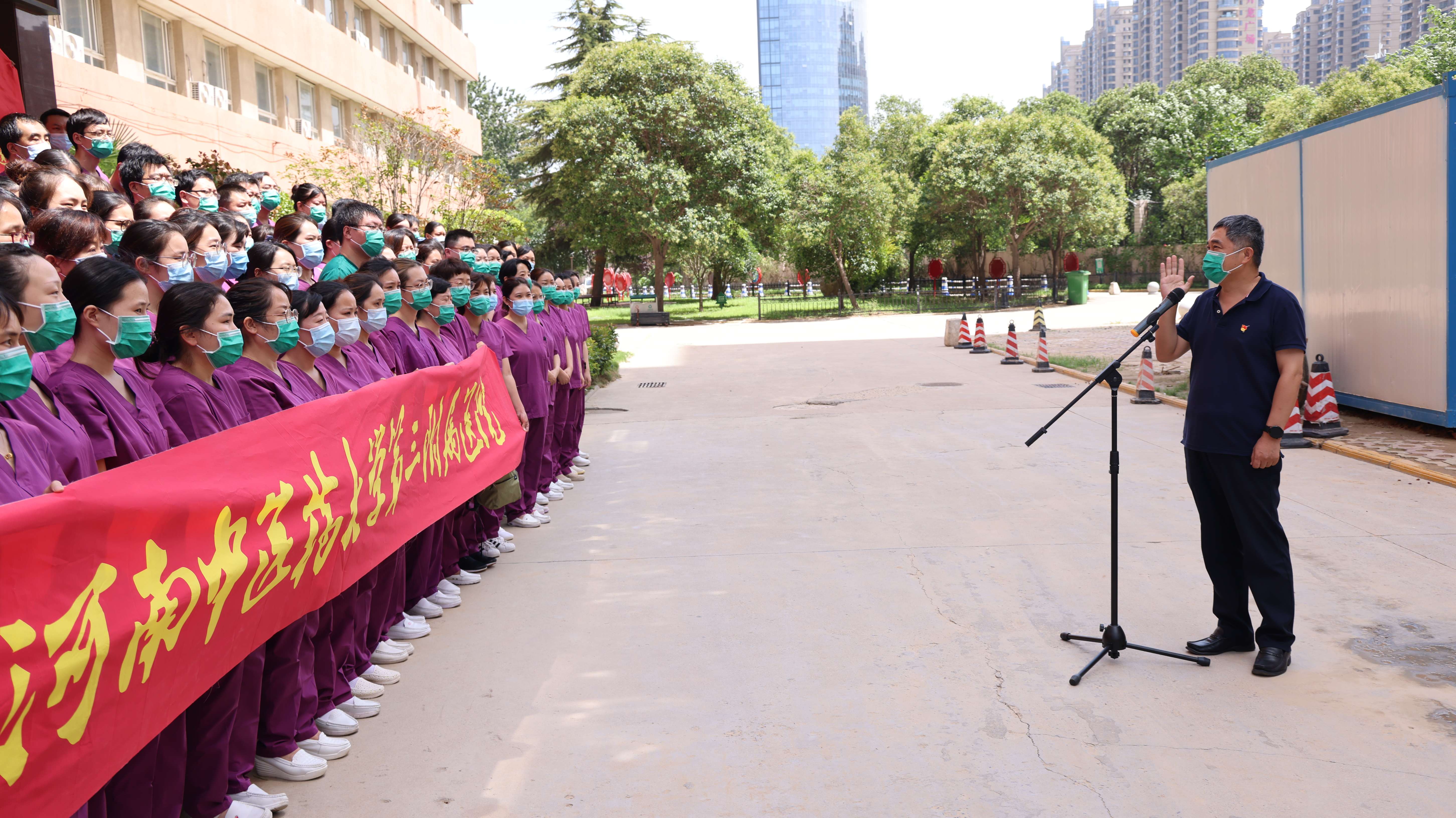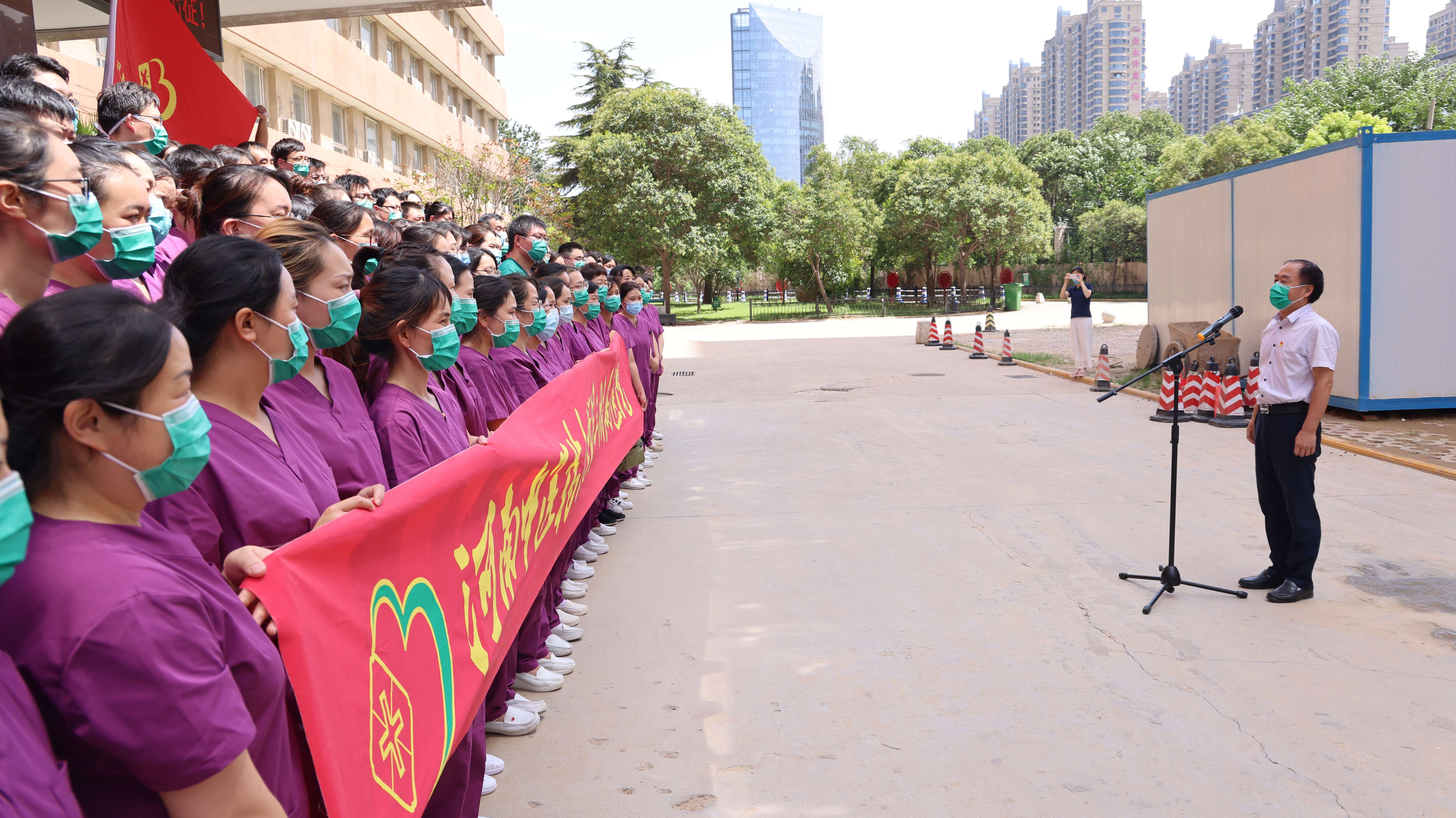 仪式上,院长张大伟对出征队员表示感谢,他指出,此次出征队伍中有很多医务人员已经参与了郑州市前四轮全员核酸检测工作,积累了丰富的经验。他希望,队员们要注重采样细节,充分体现出三附院医护人员的医者仁心,同时要做好个人防护,越到最后越要更加谨慎,越不能有松懈心理,在取得此次疫情最后胜利的关键时期,更要严格按照规范和流程,完成好本次全员核酸检测任务。“中医三附院加油!”这是张大伟为出征队伍奔赴各个核酸采集点前发出的最为催人奋进的冲锋号。
