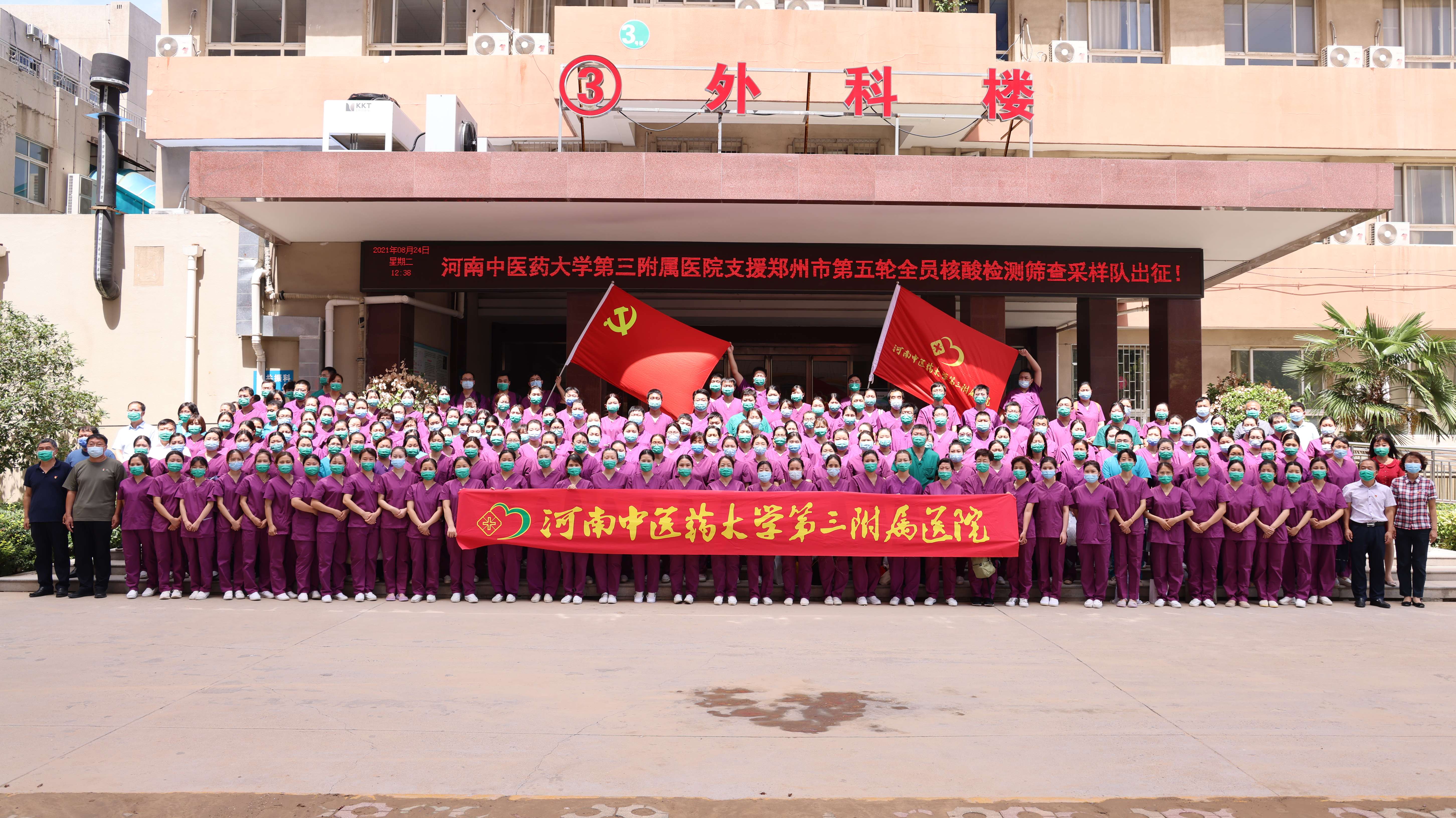 本网讯(文/潘向昆 图/田辉)按照郑州市新冠肺炎疫情防控领导小组办公室关于开展第五轮全员核酸检测的统一安排部署,2021年8月24日中午,三附院再次响应号召,闻令集结出征,200名医护人员奔赴金水区、管城区支援郑州市第五轮全员核酸检测。院领导班子成员和相关职能部门负责同志为核酸检测采样队员举行了欢送仪式。