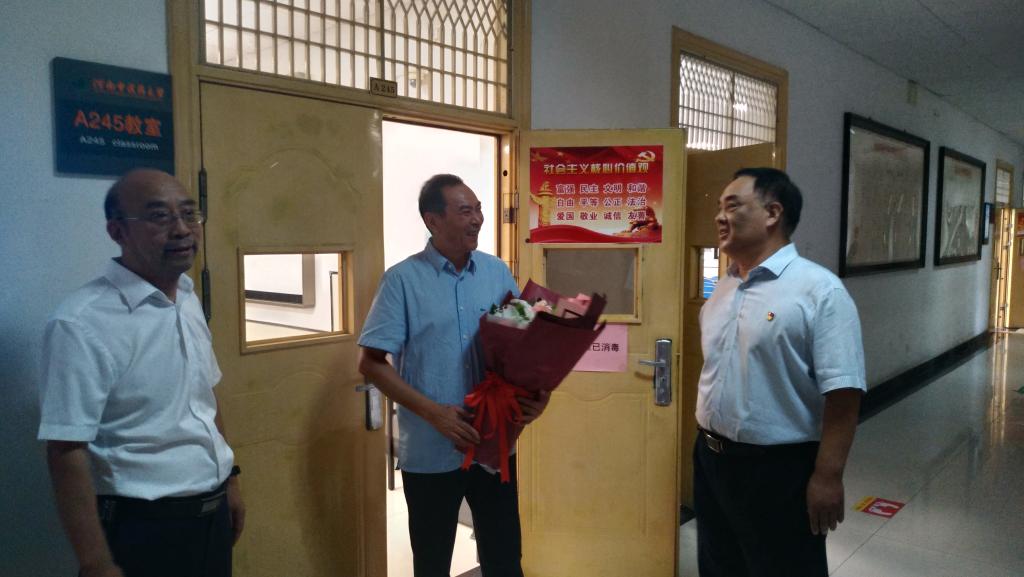 本网讯(图/文 李晓飞)金秋送爽,丹桂飘香,2020年9月7日,在第36个教师节到来之际,校党委副书记、工会主席张小平、副校长冯卫生带领党委教师工作部副部长、人事处副处长崔书克、校工会女工委副主任常瑞等到药学院、基础医学院、信息技术学院、马克思主义学院等学院,看望慰问坚守在教学科研一线的教职工,向他们送去节日的问候和美好的祝愿。