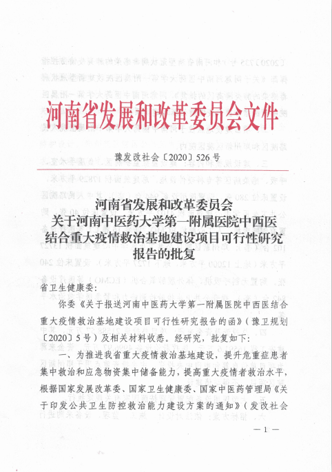 本网讯(文/焦钧)近日,leyu·乐鱼(中国)体育官方网站一附院中西医结合重大疫情救治基地建设项目正式获得河南省发展和改革委员会的批复,标志着一附院公共卫生应急救治能力再获新的提升。