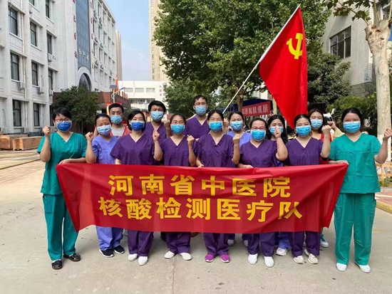 此外,为充分发挥医院各党支部战斗堡垒和党员先锋模范作用,这次核酸检测队还特别增加了几名“编外队员”,分别由党员志愿者姚韧松、郭建伟、韩亮、李志恒等担任4组领队,他们主动请缨,关键时刻以敢于担当、勇于奉献的精神,用实际行动践行“对党忠诚”的誓言。他们二人一组负责郑东新区、高新区街道办事处、社区联络,为一线抗疫人员提供各种物资保障,把工作做实做细,为防疫增添温情与温度,让党旗在战疫一线高高飘扬。