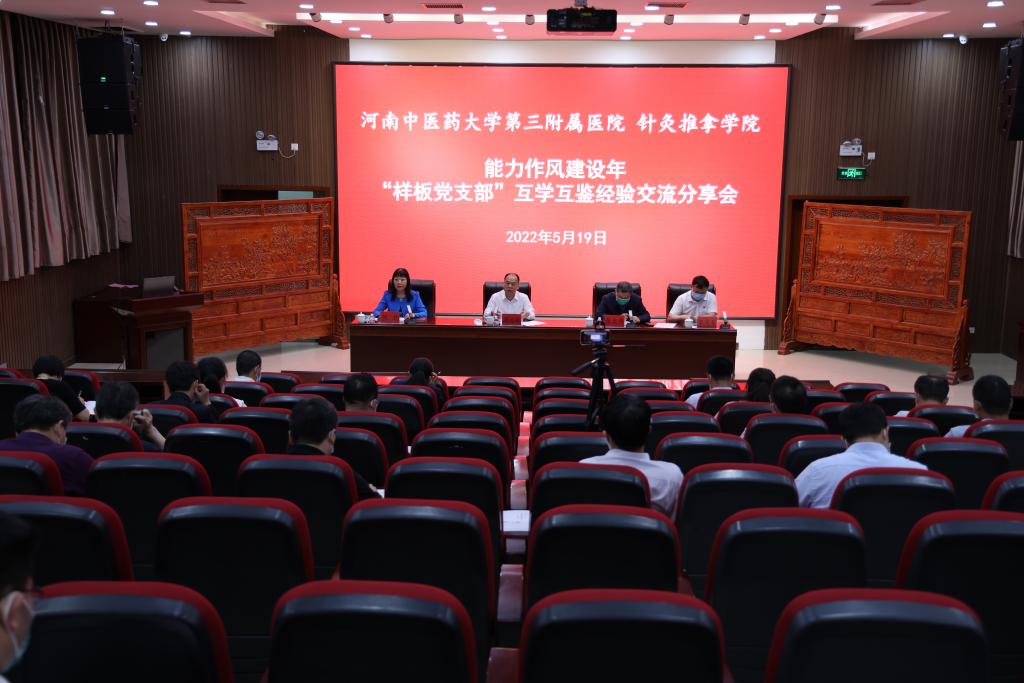 本网讯(文/郑楠楠 图/潘向昆)为持续推动“能力作风建设年”活动走深走实,通过样板引领强党建,互学互鉴促提升,2022年5月19日下午,三附院在学术活动中心举办“样板党支部”互学互鉴经验交流分享会。院党委书记周运峰、院长张大伟、党委副书记焦钧、工会主席蔡庆春和院内各党(总)支部书记代表参加会议,会议由焦钧主持。