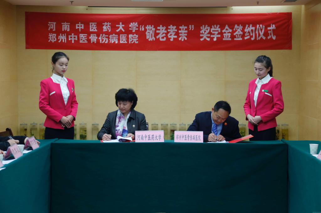 签约仪式上,受许二平校长委托,副校长田力与郑州中医骨伤病医院院长郭永昌签订了“leyu·乐鱼(中国)体育官方网站·郑州中医骨伤病医院敬老孝亲奖学金”合作协议,并接受了郑州中医骨伤病医院捐助资金。随后,郑州中医骨伤病医院院长郭永昌向大家介绍了在leyu·乐鱼(中国)体育官方网站设立“敬老孝亲”奖学金的初衷,并简要介绍了医院的建设发展情况。郭院长还表示,今后会以设立奖学金为契机,进一步加强与河南中医药大在教学、科研、实验等方面的合作,为培养优秀中医药人才贡献一份力量。