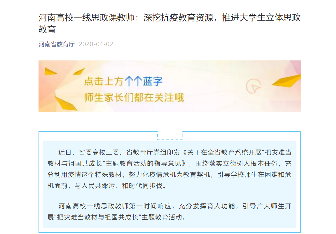河南高校一线思政课教师:深挖抗疫教育资源,推进大学生立体思政教育