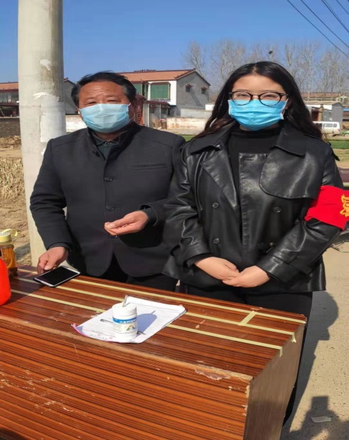 2019级针灸推拿学院专硕三班邵旭燕,积极参与巩义市回郭镇防疫工作,负责路口出入人员测量体温、信息登记。
