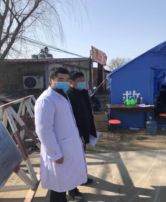 2018级针灸推拿学专升本三班李静杰,积极主动参与山西省晋城市陵川县崇文镇后川村防疫工作,配合工作人员对过往车辆人员测量体温、登记信息。