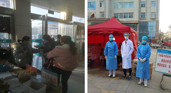 2018级针灸推拿单招班王浩然,主动参与到方城县中医院门岗执勤,帮助测量体温,参与医院的预检、分诊工作。