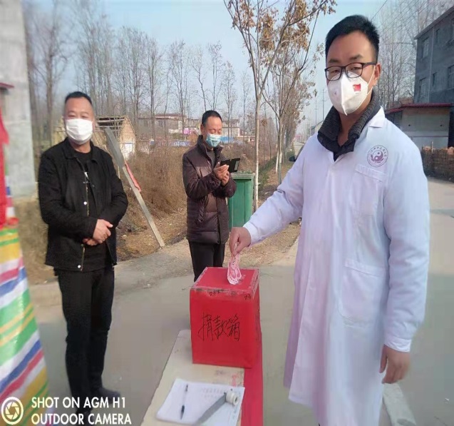 2018级针灸推拿学院单招班刘文智,积极主动投入到河南省周口市沈丘县冯营乡小高营行政村抗疫工作中去,协助工作人员走访调查、体温测量。在村干部号召村民们为武汉进行捐助时果断的捐出了自己身上仅有的200元钱。