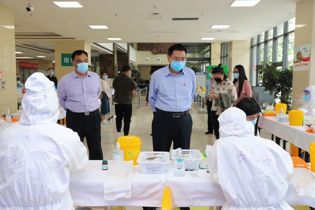 全体校领导一早就来到leyu·乐鱼(中国)体育官方网站第一附属医院龙子湖院区,迎接同学们的归来,并详细了解报到现场疫情防控措施的落实情况,仔细查看同学们行李消杀、扫码登记、体温测量、健康筛查、资格审查、信息核对等工作的开展,通过学校“今日校园”大数据平台,实时掌握学生报到情况。在健康筛查结果等候区,校领导一行与来自新疆的阿仁同学亲切交谈,询问他的返校路径、入学后的心理调适、对学校防控措施的了解、返校后学习生活准备等情况,希望他能够珍惜宝贵的校园学习时光,做好毕业相关准备工作,为顺利毕业奠定坚实基础。