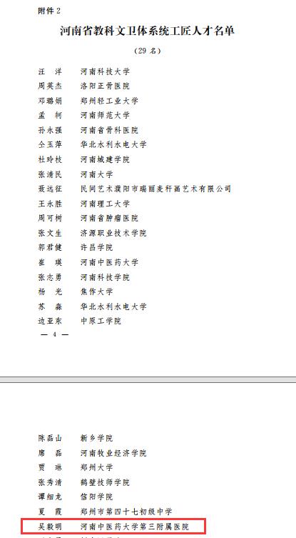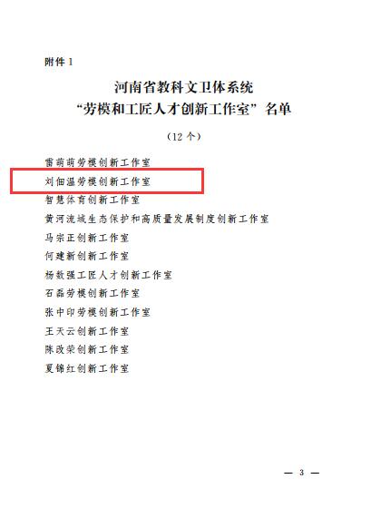本网讯(文图/姜楠)近日,河南省教科文卫体工会公布“劳模和工匠人才创新工作室、工匠人才"评选结果,三附院刘佃温劳模创新工作室被命名为“河南省教科文卫体系统劳模和工匠人才创新工作室”,康复科二病区主任吴毅明荣获“工匠人才”荣誉称号。