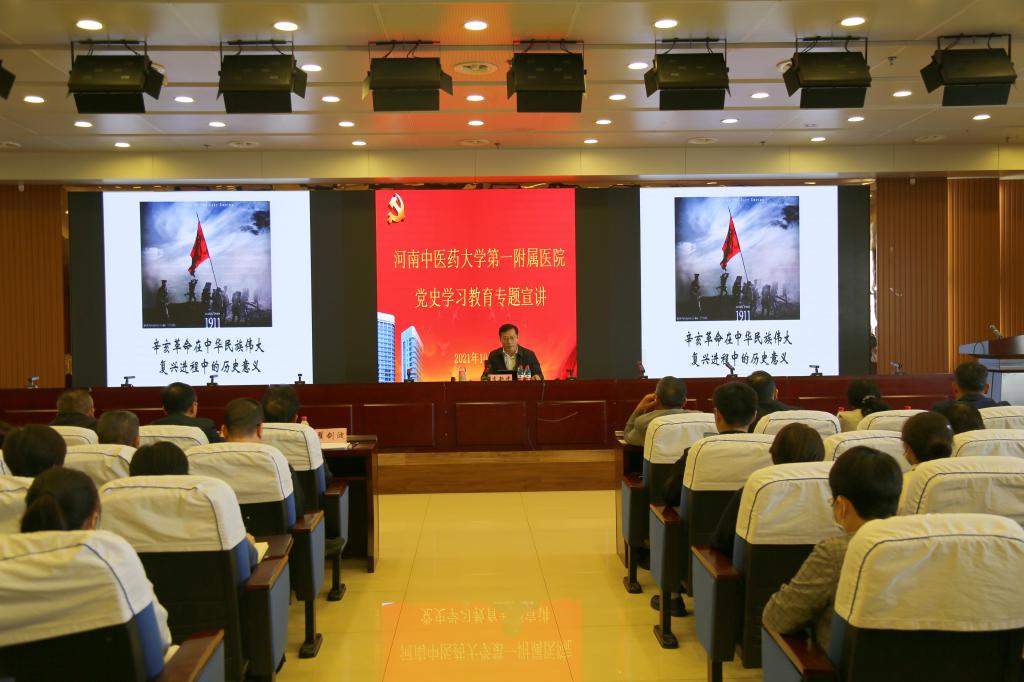 本网讯(文/梁楠 图/翟佳文)为深入贯彻学习习近平总书记在纪念辛亥革命110周年大会上的重要讲话精神,持续将党史学习教育向深度推进向广度扩展。2021年10月13日下午,一附院邀请河南省政协教科卫体委员会副主任李新中进行党史学习教育专题宣讲。